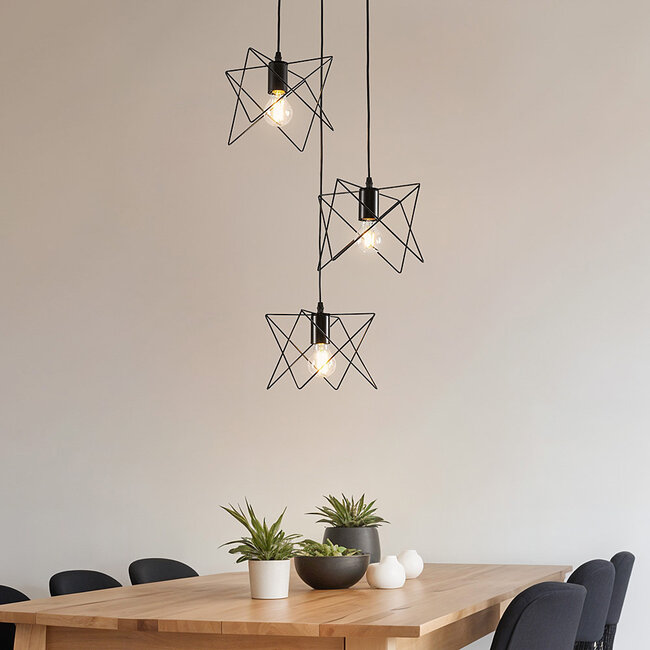 Minimalistinen, omalaatuinen tai moderni: tätä Star riippuvalaisinta voidaan kuvata monin tavoin. Riippuvalaisin on kolmen valonlähteen leikkisä yhdistelmä, joka laskeutuu pyöreältä alustalta. Jokainen lamppu koostuu E27-kantaisesta lampunpidikkeestä, jota ympäröi tähden muotoinen metallikehikko. Valaisimen selkeät linjat ja tyylikäs viimeistely sopivat erityisesti skandinaaviseen sisustukseen, jossa tämän kaltainen katseen vangitseva valaisin pääsee oikeuksiinsa. Star on näyttävä paketti kaikessa yksinkertaisuudessaan. Star näyttää erityisen upealta kun yhdistät sen koristeellisiin LED-filamenttilamppuihin, jotka jäljittelevät ulkomuodoltaan ja valonsa väritykseltä vanhanmallisia hehkulamppuja, mutta kuluttavat vain murto-osan energiasta.